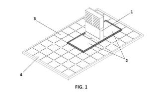 - La figura 3 representa una vista en planta de una realización de la presente invención dispuesta sobre un panel fotovoltaico, con un recorrido completo de ejemplo.