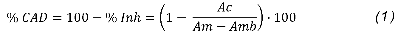 La capacidad antidesnaturalizante (% CAD) se calculó en base al porcentaje de inhibición de la desnaturalización (% Inh) con la siguiente ecuación: