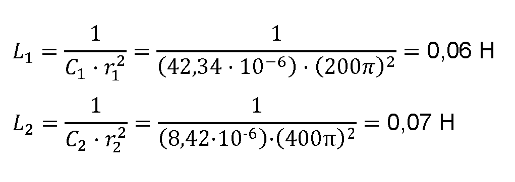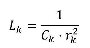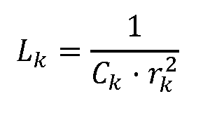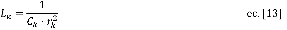 El valor de la inductancia Lk de las bobinas (2) de cada una de las ramas LC (2) se calcula a partir de las respectivas capacidades Ck y frecuencias de resonancia rk mediante la expresión:
