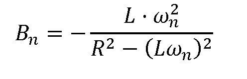 Aplicando teoría de circuitos, se puede comprobar que, para estos valores, la susceptancia de la carga (6) Bn para cada frecuencia wn; esto es, la parte imaginaria de la admitancia Yn de la carga (6) , es igual pero de signo opuesto a la del compensador (1) . De esta manera, la susceptancia del circuito para esa frecuencia se hace cero, permitiendo obtener de la fuente (5) la corriente mínima que produce la misma potencia activa en la carga RL (6) .