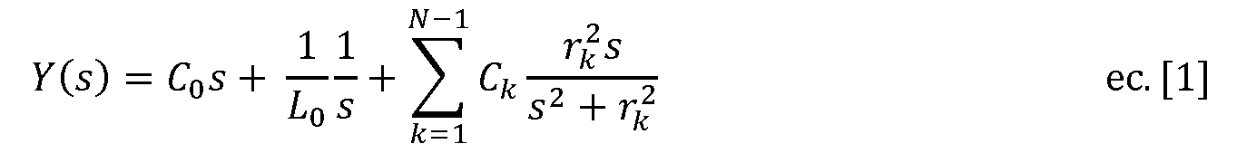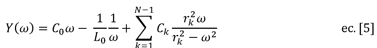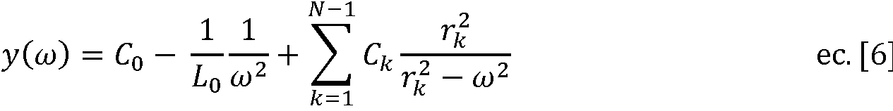 La admitancia de un compensador pasivo sin pérdidas es puramente imaginaria, por lo que la frecuencia compleja s se sustituye por s = j<u. Así, la expresión de la admitancia descrita en la ecuación (ec.) [1] queda como: