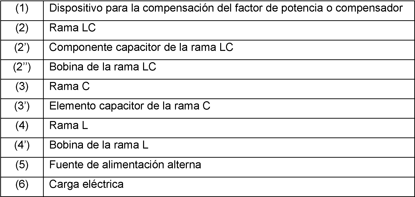 - un dispositivo (1) para la compensación del factor de potencia conectado en paralelo a la carga (6) .