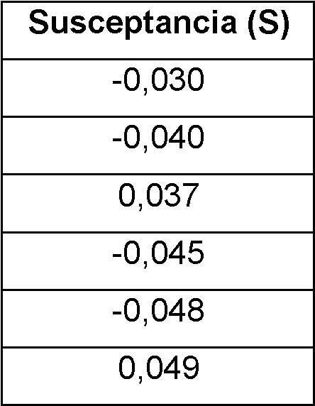 Las susceptancias (Bn) para cada uno de estos armónicos se recogen en la Tabla 2 en Siemens (S) .